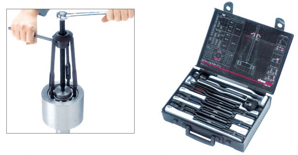 ![]() | MK1030軸承折半工具套裝組 新推出的軸承拆裝工具組合是由滾珠軸承拉馬和軸承安裝工具組合而成,便攜式工具箱內(nèi)共用50個部件,并帶有使用選型表和操作說明,特別適合中小型軸承的使用者。 滾珠軸承拉馬 ● 含一個滑錘,2個支撐絲桿,5組拉馬爪和7個支撐環(huán) ● 折彎式拉馬爪可牢固抓緊軸承 ● 彈性鎖定裝置,方便拉馬爪定位 ● 所有的爪子尺寸均有明確標(biāo)示 ● 高張力合金鋼,性能更佳 ● 適用軸承內(nèi)徑:10-80mm 軸承安裝工具 ● 含24個安裝環(huán),2個沖擊套筒和1把反彈錘 ● 高強(qiáng)度的抗震安裝環(huán)和沖擊套筒 ● 人性化的設(shè)計使用者更順手 ● 適用軸承內(nèi)徑:10-30mm |