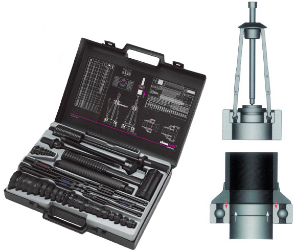 ![]() | BP61滾珠軸承拉馬 ● 特別適合于暗軸承座中滾珠軸承的拆卸 ●含2套支撐絲桿,6組拉馬爪 ● 彈性鎖定裝置,方便拉馬爪定位 ● 高張力合金鋼,性能更佳 ●包裝盒內(nèi)帶有軸承選型表,使用更方便 ●適用軸承內(nèi)徑:10-100mm ●重量:3.2kg |